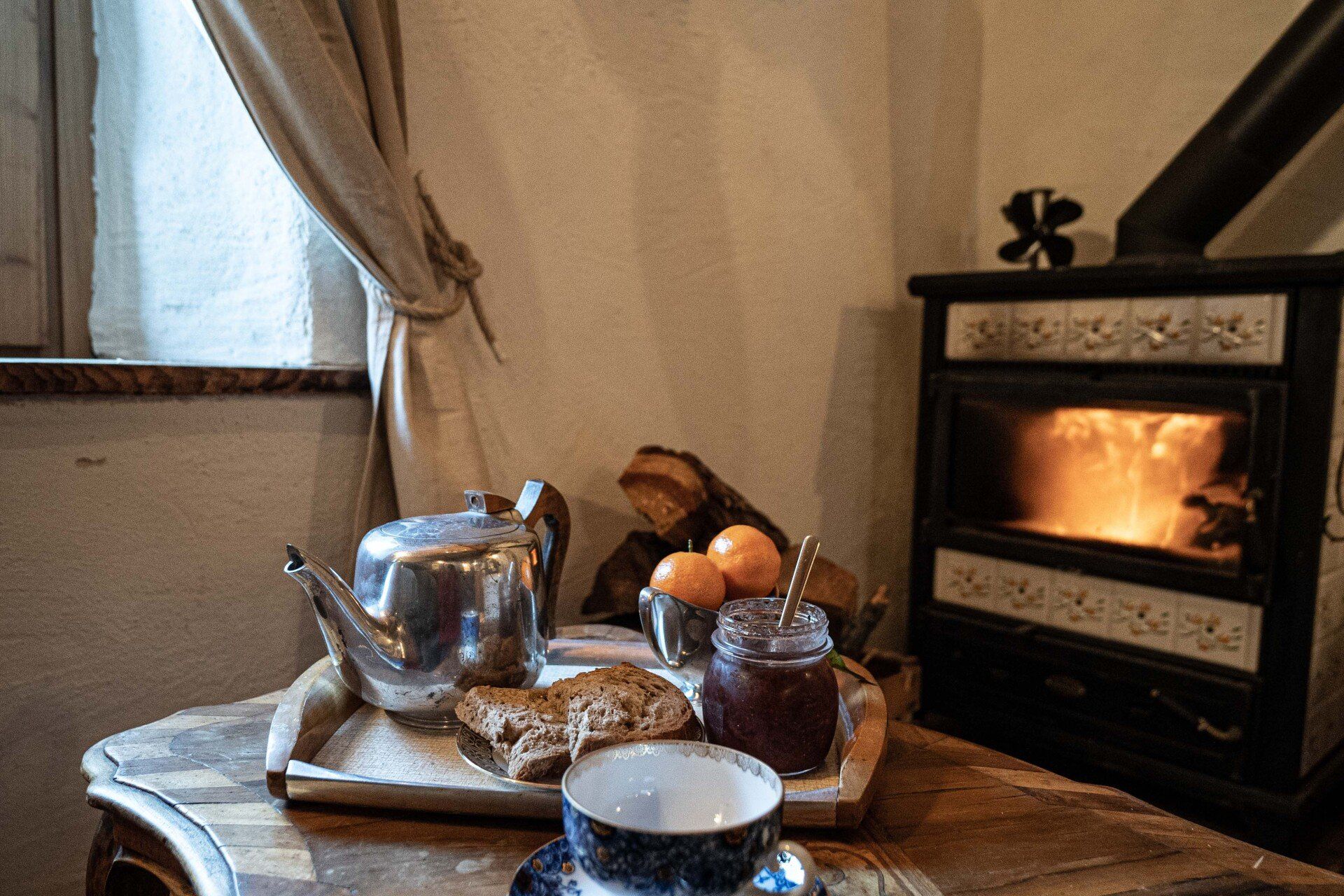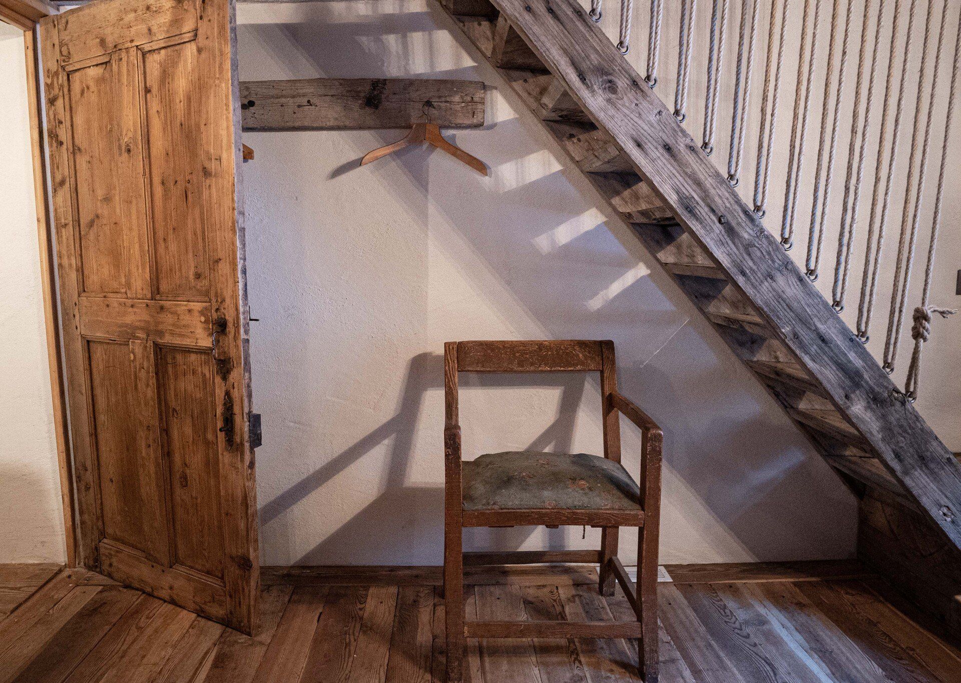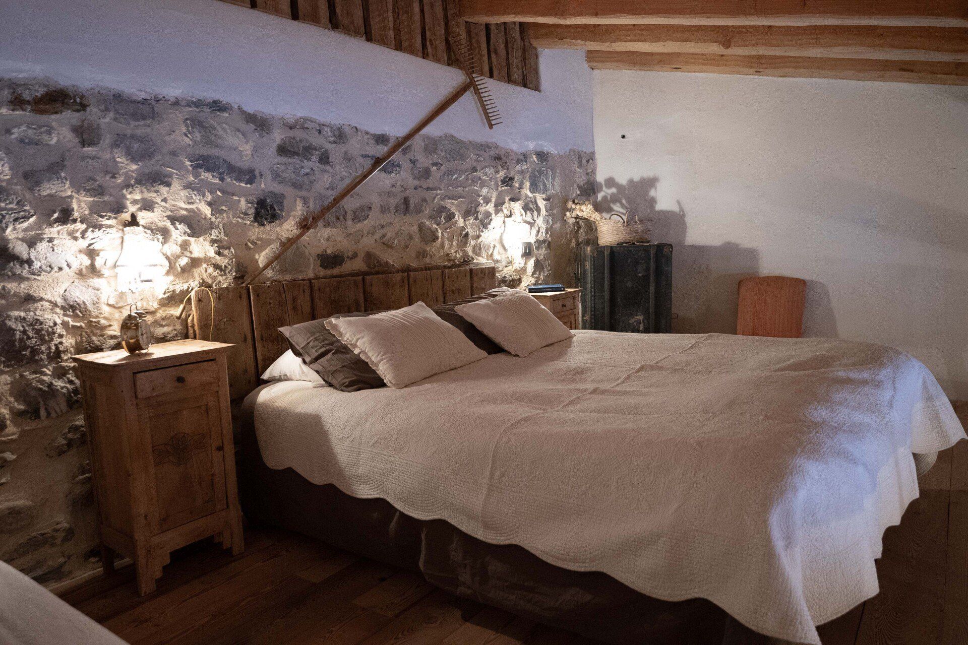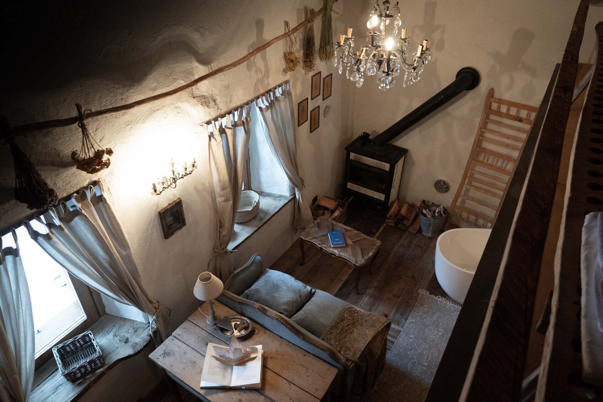 A spacious comfortable suite overlooking the wide open snowfields outside, with a cosy sofa in front of an antique wood stove. Complete with an open bathroom on the first floor, a double bathtub where you can relax after your day outdoors, and a large shower room. The bedroom is on the mezzanine, with a double bed, plus an extra single bed to one side.
