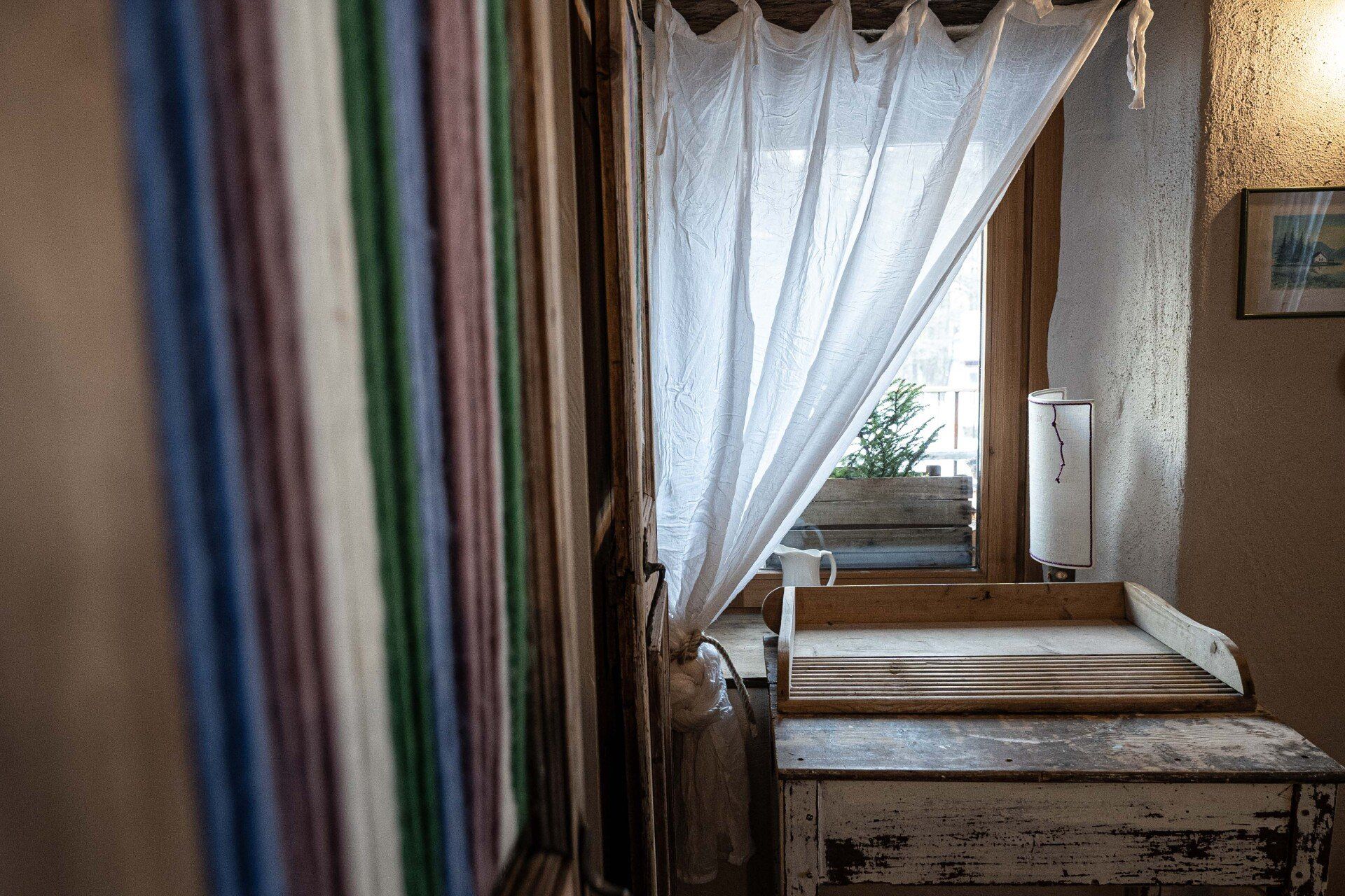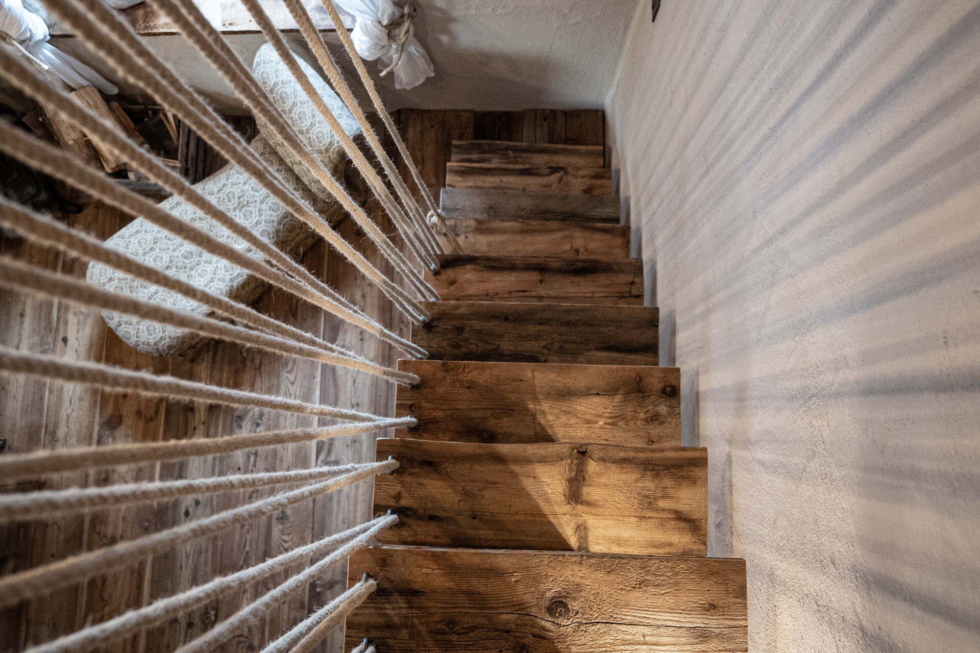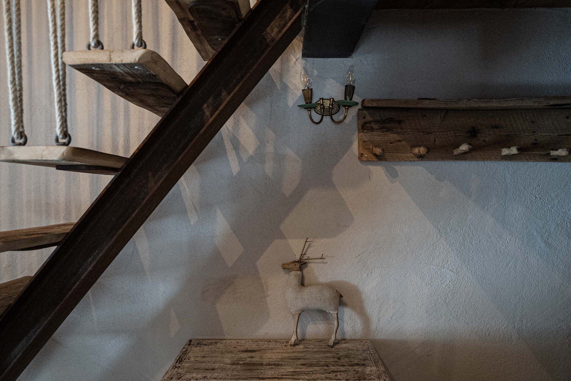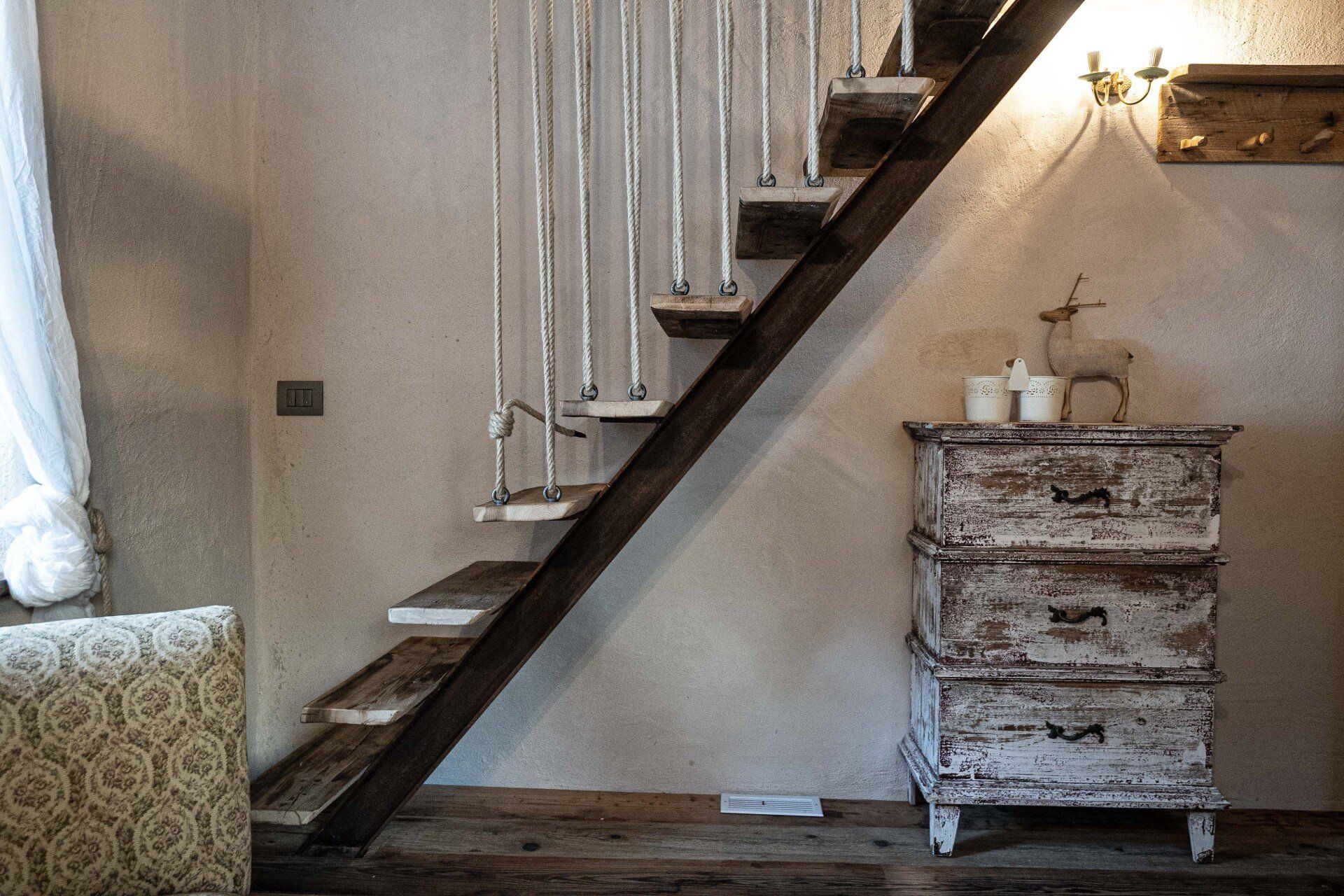 This is the smaller room, a snug comfy nest from where the little "finestrella" close to the double bed on the mezzanine, invites you to spy on the world outside, this room has a small private bathroom with a shower, plus a relaxing lounge corner with an antique wood stove.