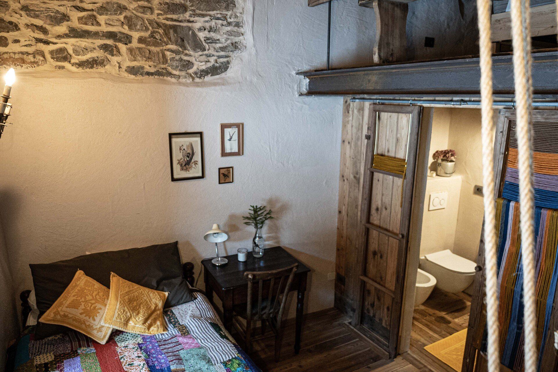 My son's room, from the window next to the bed of "king" Pepe you can fall asleep watching the snowfall or a full moon appear above the trees. It has a private bathroom with a shower; plus a double bed above on the mezzanine.